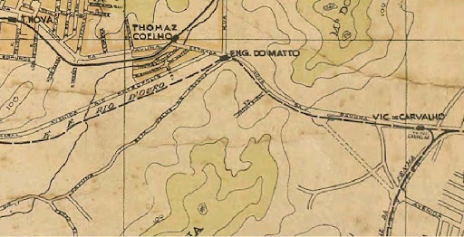 | Mapa de 1928 mostrando o trecho inicial do ramal da Penha (detalhe para a estação Engenho do Matto, que foi substituida por Engenho da Rainha, construída próxima dali) Imagem: TGVBR  |