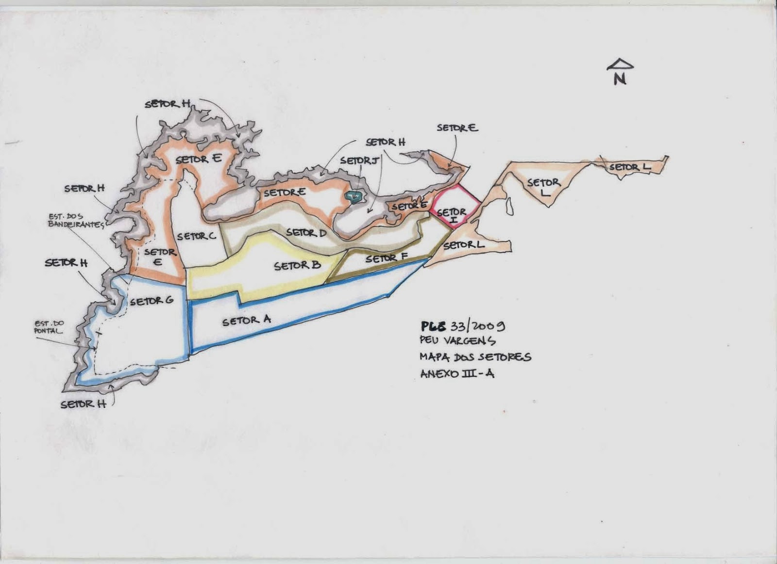 PEU Vargens – Mapa dos setores elaborado pela responsável por este blog. O desenho acompanha os artigos de nossa autoria publicados no Portal Vitruvius cujos links estão no corpo deste post.