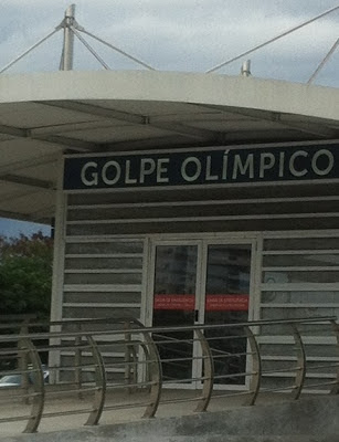 | Edição de Arte sobre imagem da estação do BRT em frente ao terreno do futuro Campo de Golfe que será construído sobre área de Reserva Ambiental, conforme lei aprovada por vereadores e prefeito na primeira semana de 2013 explicada em Sancionado o Pacote. Sem o Bode. Imagem: Urbe CaRioca |