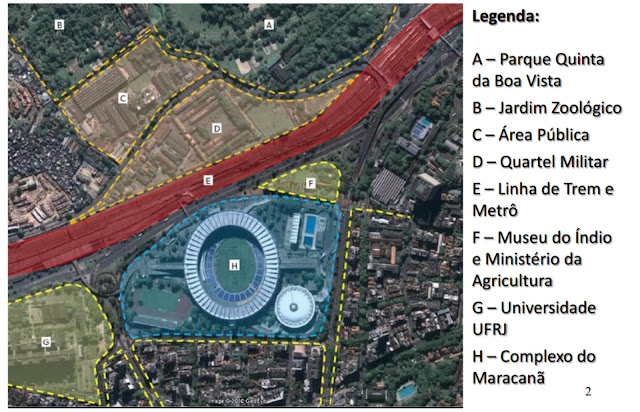 Com clareza e objetividade o autor apresenta as diferenças entre o projeto original para a reforma do Maracanã e respectiva área de entorno – objeto de proposta da Prefeitura para reurbanização e paisagismo – e a proposta atual do governo estadual, que prevê a demolição de dois equipamentos esportivos: o Estádio de Atletismo Célio de Barros e o Parque Aquático Júlio Delamare. Além de considerações sobre a ambiência do estádio – ainda um bem cultural tombado apesar de haver sofrido descaracterização quase total – dados técnicos apontam que a manutenção desses equipamentos não prejudicaria a acessibilidade ou a saída de público.