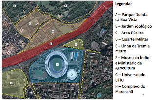 Com clareza e objetividade o autor apresenta as diferenças entre o projeto original para a reforma do Maracanã e respectiva área de entorno – objeto de proposta da Prefeitura para reurbanização e paisagismo – e a proposta atual do governo estadual, que prevê a demolição de dois equipamentos esportivos: o Estádio de Atletismo Célio de Barros e o Parque Aquático Júlio Delamare. Além de considerações sobre a ambiência do estádio – ainda um bem cultural tombado apesar de haver sofrido descaracterização quase total – dados técnicos apontam que a manutenção desses equipamentos não prejudicaria a acessibilidade ou a saída de público.
