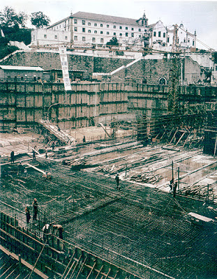 As demais fotos são do blog e mostram o enorme espaço não utilizado que deveria servir de acesso à plataforma da Linha 2. Ali havia até um chafariz até 2011. Atrás destas paredes provisórias da Univercidade, há uma parede de alvenaria fechando o acesso à plataforma não inaugurada da Linha 2.