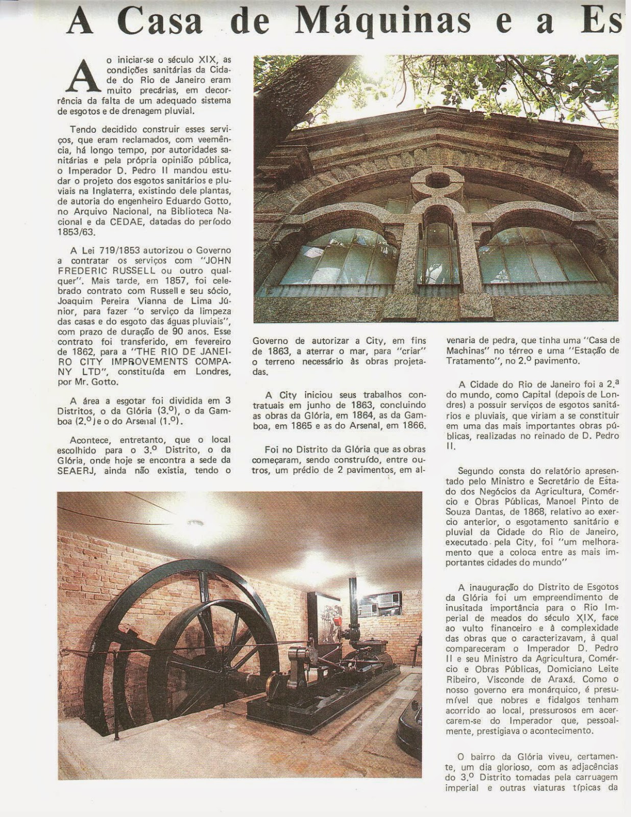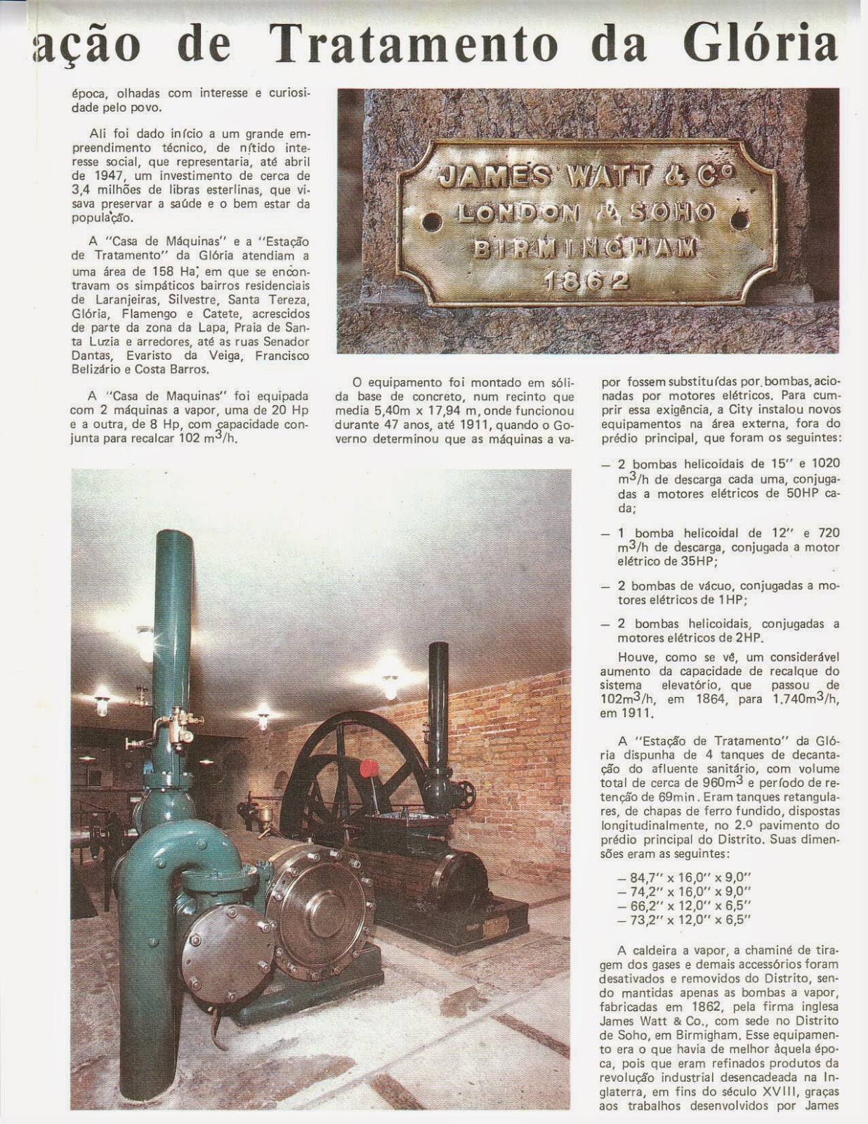 Com bombas a vapor, fabricadas não menos que pela James Watt & Co., ainda podem ser vistas no local, hoje sede da SEAERJ – Sociedade dos Engenheiros e Arquitetos do Estado do Rio de Janeiro.