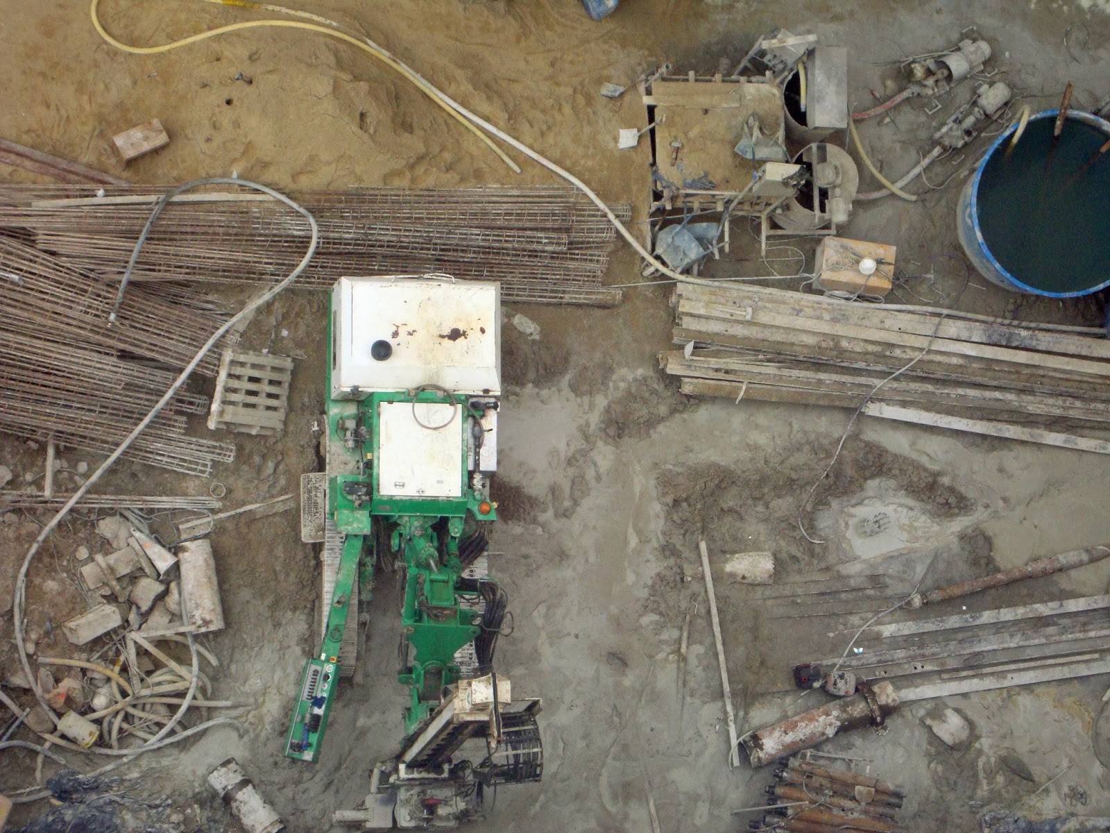 O tratamento que estão dando para o problema é o bombeamento de cimento, através de uma sonda (Foto 2), para o subsolo, onde corre o lençol freático. Mas a Natureza não aceita, de forma passiva, o ataque humano e tem se rebelado, do jeito que pode, jogando o cimento, com água subterrânea, de volta para a superfície. A situação do canteiro de obras é lamentável – um mar de cimento e água – conforme as Fotos 3, 4 e 5. As Fotos 6 e 7 mostram o canteiro de obra, em sua totalidade, com e sem zoom, respectivamente.