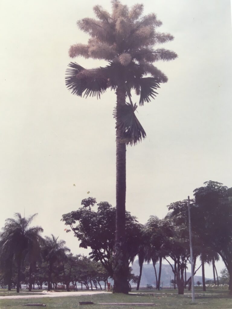 Fig. 4 – Primeira corifa que floresceu no Parque do Flamengo. Foto: Ivete Farah, 1992.