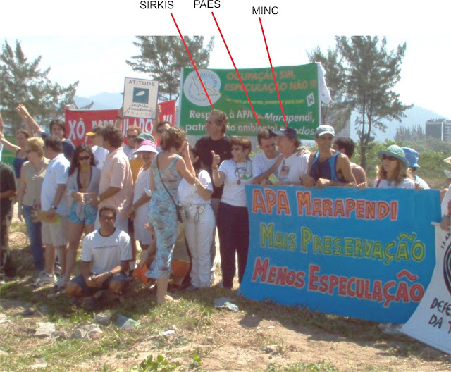 A imagem mostra três defensores da reserva que compreende a Área de Proteção Ambiental – APA Marapendi, Barra da Tijuca, Rio de Janeiro… em outros tempos.