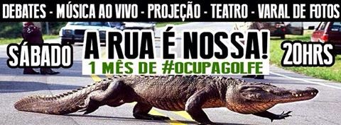Completados 28 dias de ocupação, em frente ao terreno em que está sendo construído o controverso campo de golfe para as Olimpíadas de 2016, o pacífico movimento ambientalista Ocupa Golfe obteve a sua primeira resposta positiva das instituições. Há dias os ativistas reclamavam do desinteresse das autoridades públicas, assim como do silêncio dos conglomerados de mídia, particularmente da televisão aberta (1). (…)