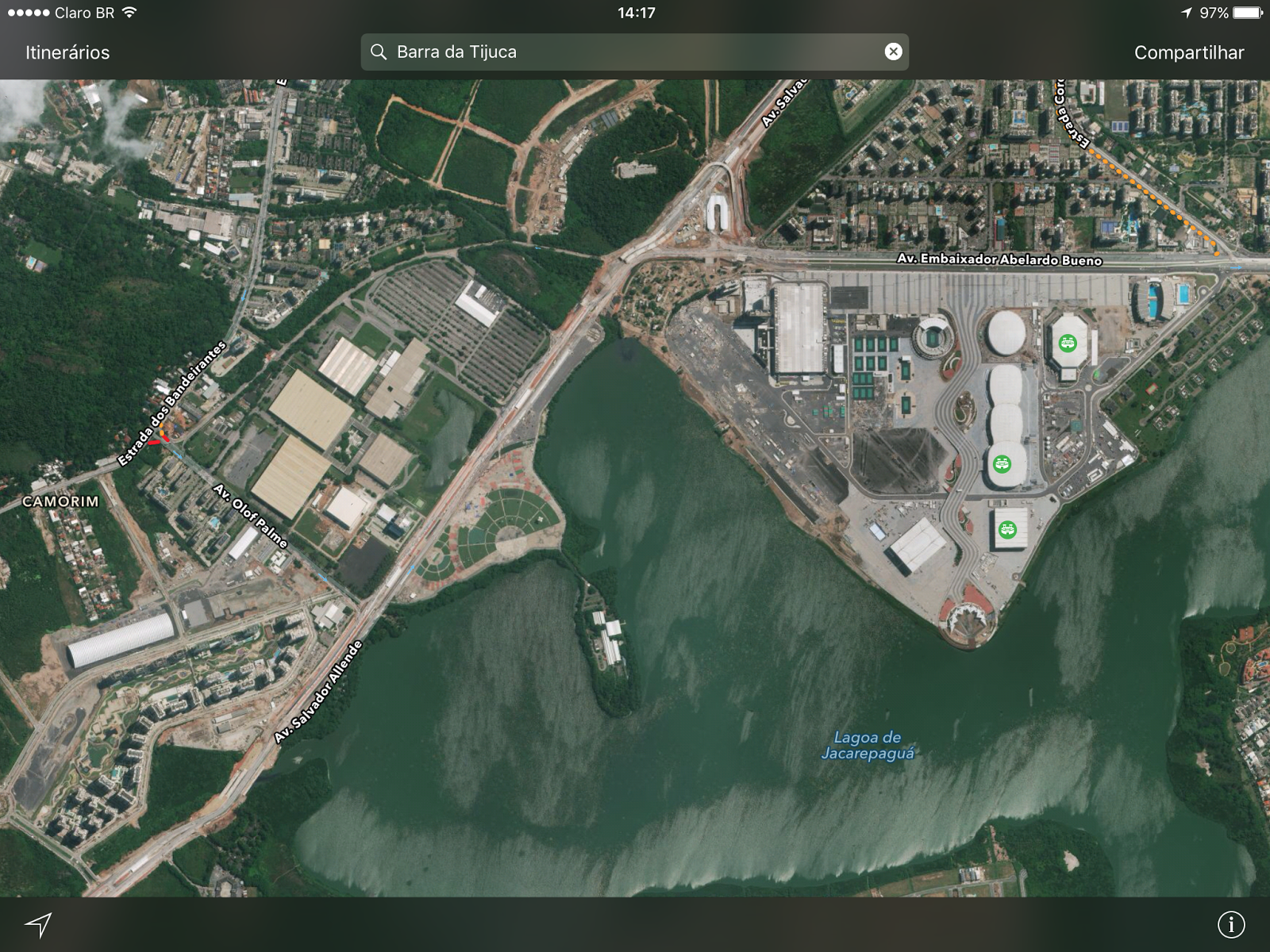 Situado na Avenida Salvador Allende (antiga Avenida Arenápolis) em parte da área delimitada por esta, pela Avenida Olof Palm, pela Estrada dos Bandeirantes e pela Via de Ligação, o terreno não é uma ilha.