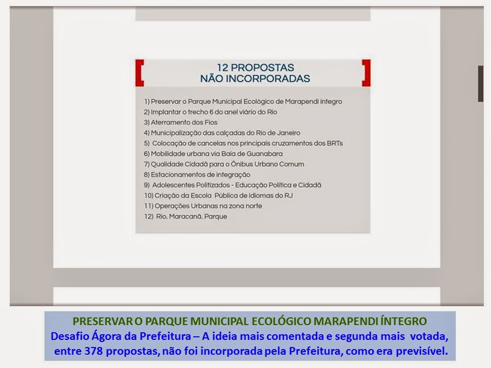 Resta aguardar o Ministério Público do Rio de Janeiro, enquanto os defensores da APA Marapendi continuam a lutar contra a desinformação geral, acampados em frente ao terreno situado na Avenida das Américas nº 10333, Barra da Tijuca, Rio de Janeiro, e divulgam desmandos olímpicos em vários pontos da cidade, como ontem na Cinelândia.