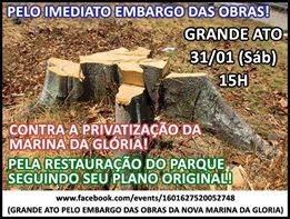 Amanhã haverá uma manifestação para pedir o embargo das obras, em favor da preservação do Parque do Flamengo.