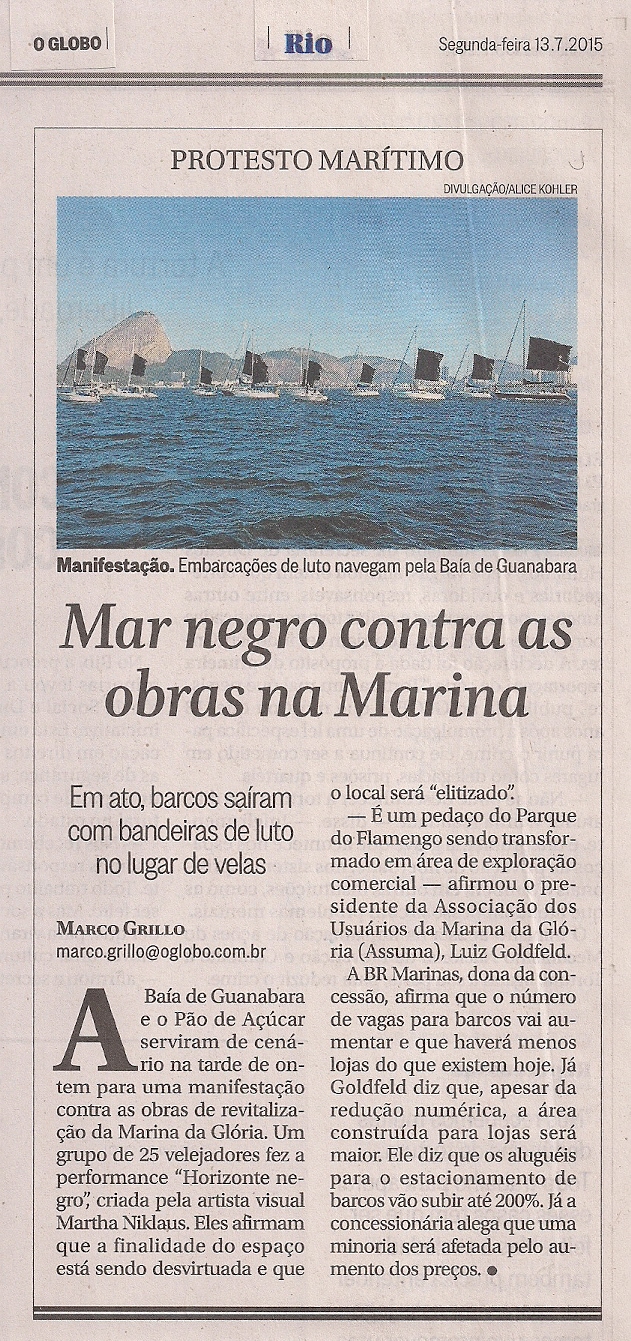2. Recomendamos a leitura do texto que Sonia Rabello, jurista e Presidente da FAM-RIO, publicou hoje em seu blog – ‘Marina da Glória: liminar é revogada. Ação Civil Pública continua’ cujo título é um alento, após a notícia de que a obras na Marina da Glória foram novamente autorizadas.