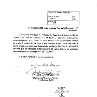 A demolição de qualquer edificação na Cidade do Rio de Janeiro depende de licença da Prefeitura. No caso de prédios construídos até o ano de 1937 as licenças para demolir são submetidas previamente ao Conselho Municipal de Proteção do Patrimônio Cultural. O mecanismo, criado em 1990, tem a finalidade de detectar construções de interesse cultural – em sentido amplo – o que pode levar a ações para a preservação desses bens, seja através do tombamento, em geral quando há valor individual, ou da criação das Áreas de Proteção do Patrimônio Cultural – APAC, quando há existem conjuntos arquitetônicos relacionados à memória urbana histórica, cultural, ou mesmo afetiva para determinada coletividade.