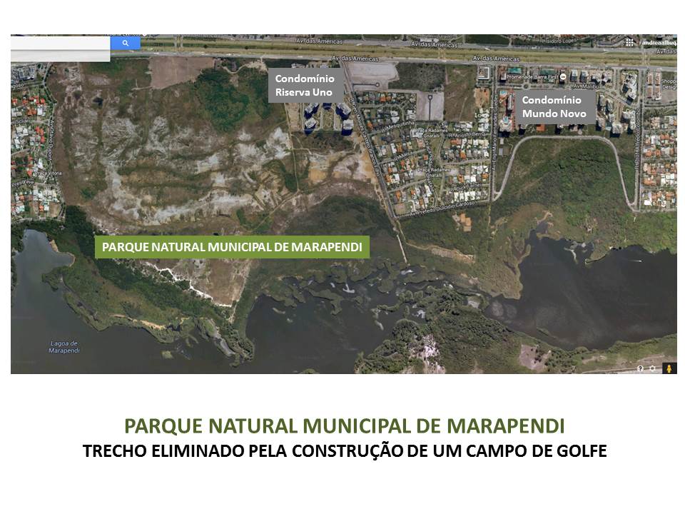 | Sobre imagem do Google Maps, ainda sem o Campo de Golfe dito Olímpico |