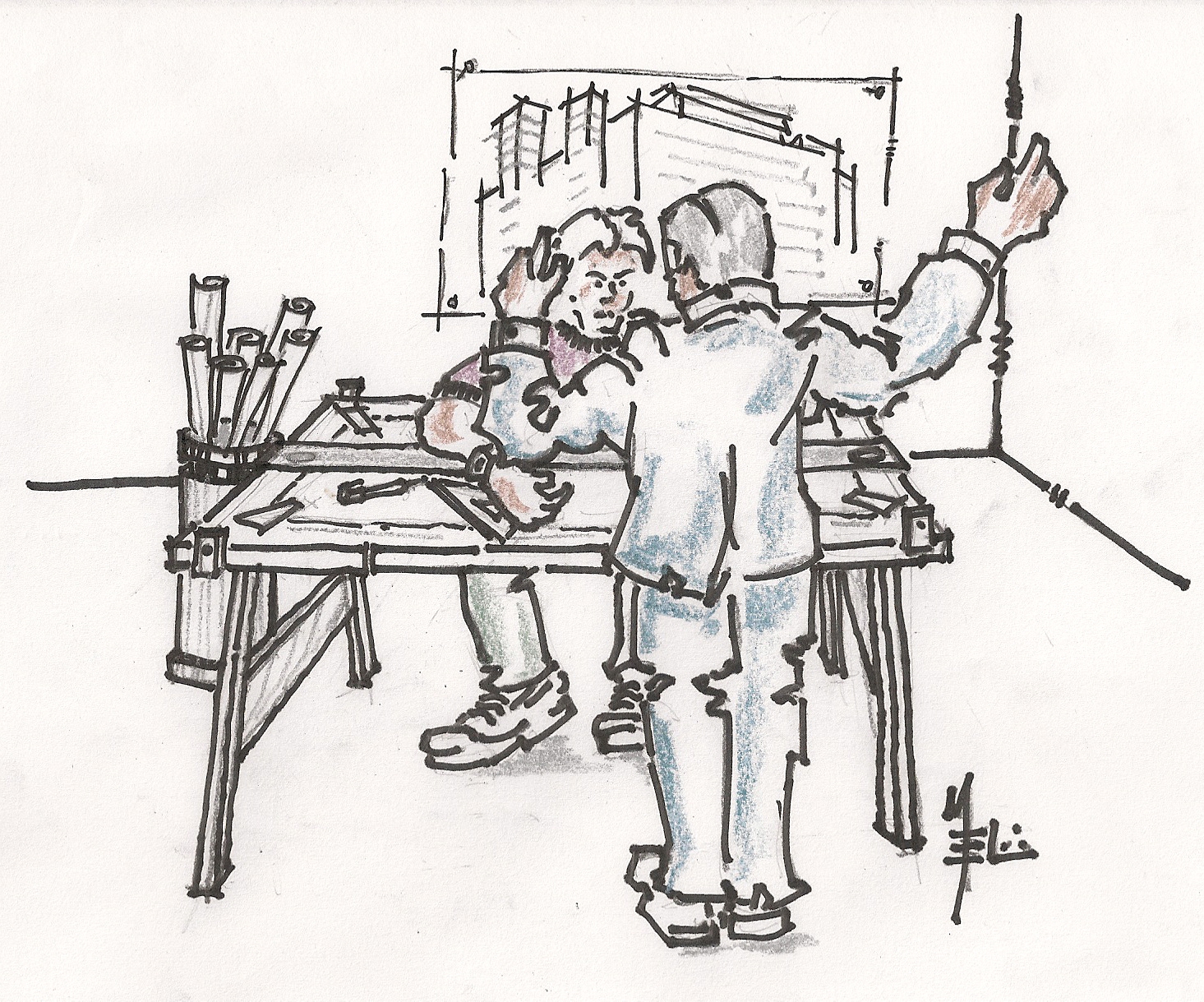 Antes da degola, Salomão pediu uma lista do que seria necessário para equipar uma sala maior. O trabalho aumentava a cada dia, precisávamos de materiais bons e mais espaço. Uma funcionária nova providenciava as compras e insistia em saber o que faltava. Fizemos o layout, pedimos pranchetas, luminárias, réguas paralelas e canetas de nanquim – um luxo antes da era do AutoCAD e depois das réguas “T” – e canetas Graphos.