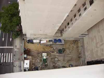 Retiraram as fundações singelas do antigo prédio, cavaram o terreno para implantação das novas estruturas, monstruosamente maiores, e atingiram um lençol freático da Praia de Copacabana, suponho, de maneira inesperada.