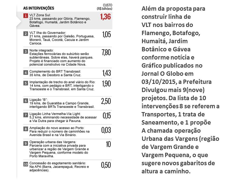 Nesses aspectos v. análises e artigos no blog Urbe CaRioca e a reportagem Peu das Vargens, uma feroz especulação imobiliária (O Globo 29/09/2013).