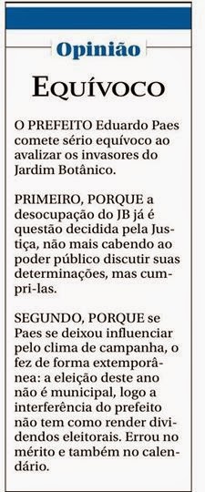 “_Sou contra a postura radical do Jardim Botânico de tirar todo mundo. Há famílias que estão ali há mais de cem anos. Acho uma coisa demofóbica. Não quero que pessoas tenham que sair apenas porque são pobres. Tirar todo mundo é um certo sectarismo. Não vou pagar a saída de ninguém que não tenha relação com dano ambiental. Quem não quiser conviver com pessoas mais humildes na frente tem que se mudar para a Suíça — disse.