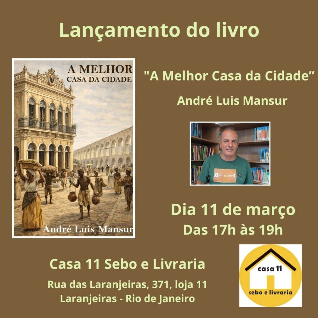 No próximo dia 11 de março, das 17h às 19h, ocorrerá na Casa 11 Sebo e Livraria, em Laranjeiras, na Zona Sul do Rio, o lançamento do primeiro romance histórico do jornalista, memorialista e escritor André Luis Mansur, intitulado “A melhor casa da cidade”, que reconstrói, com rigor documental e vigor literário, um dos momentos mais decisivos da história do Brasil: a transferência da Corte portuguesa para o Rio de Janeiro, em 1808. A partir desse acontecimento extraordinário — a única vez em que uma monarquia europeia se instalou em território americano — o livro lança um olhar atento sobre o impacto político, social e humano da chegada de milhares de nobres a uma cidade colonial pequena, desigual e profundamente marcada pela escravidão.