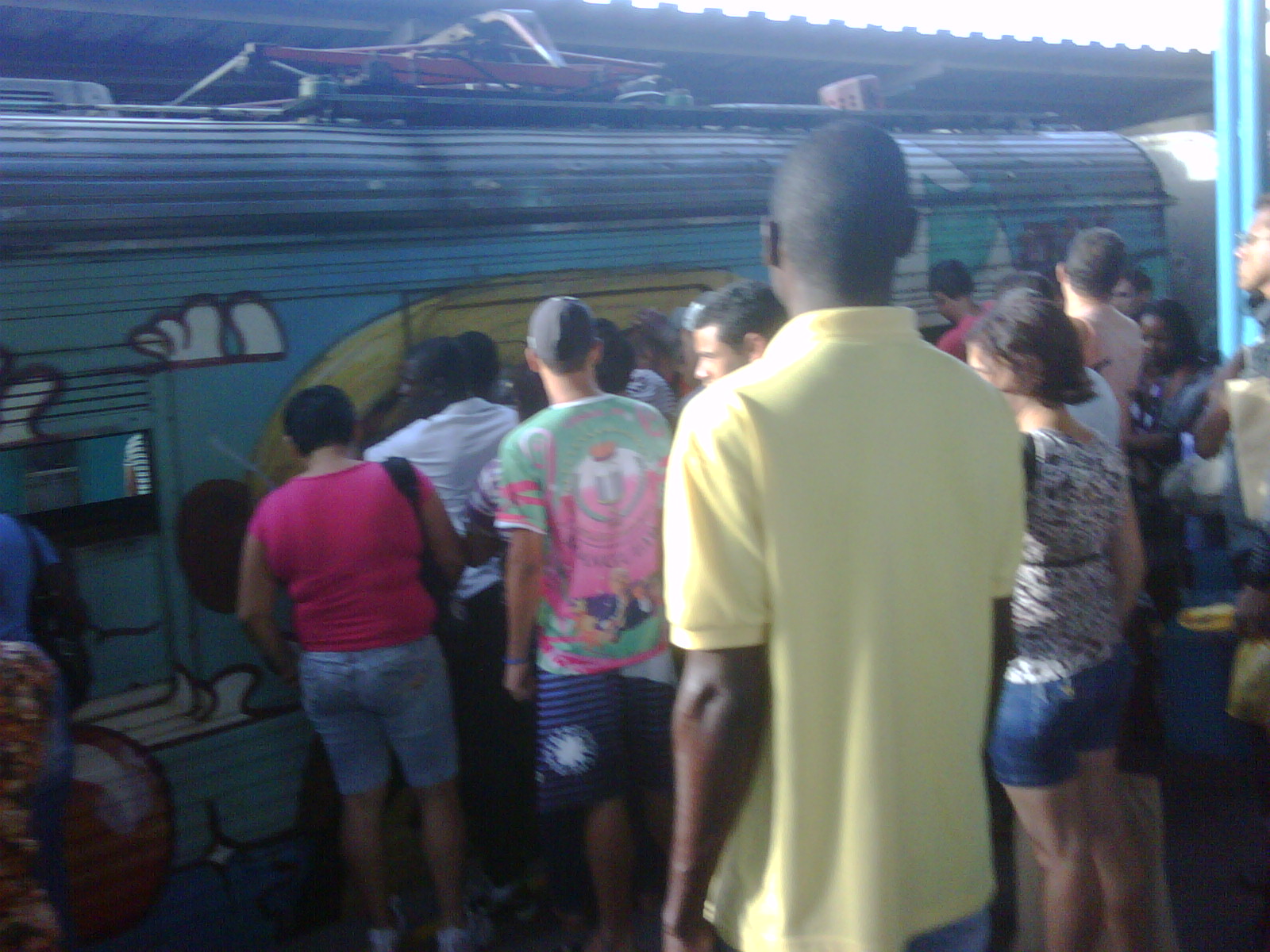 “A Supervia cobra de cada passageiro 2,90 para esta realidade! Trens lotados, pessoas disputando lugares já que a viagem é longa e a grande maioria sai de bairros afastados para trabalhar no Centro e Zona Sul. Descaso total, vagões caindo aos pedacos, sem ventilaçãoo! Ar condicionado? Sorte! Dentre vários ramais oferecidos, esse retrata o ramal Japeri, o ramal com o maior número de pessoas“.