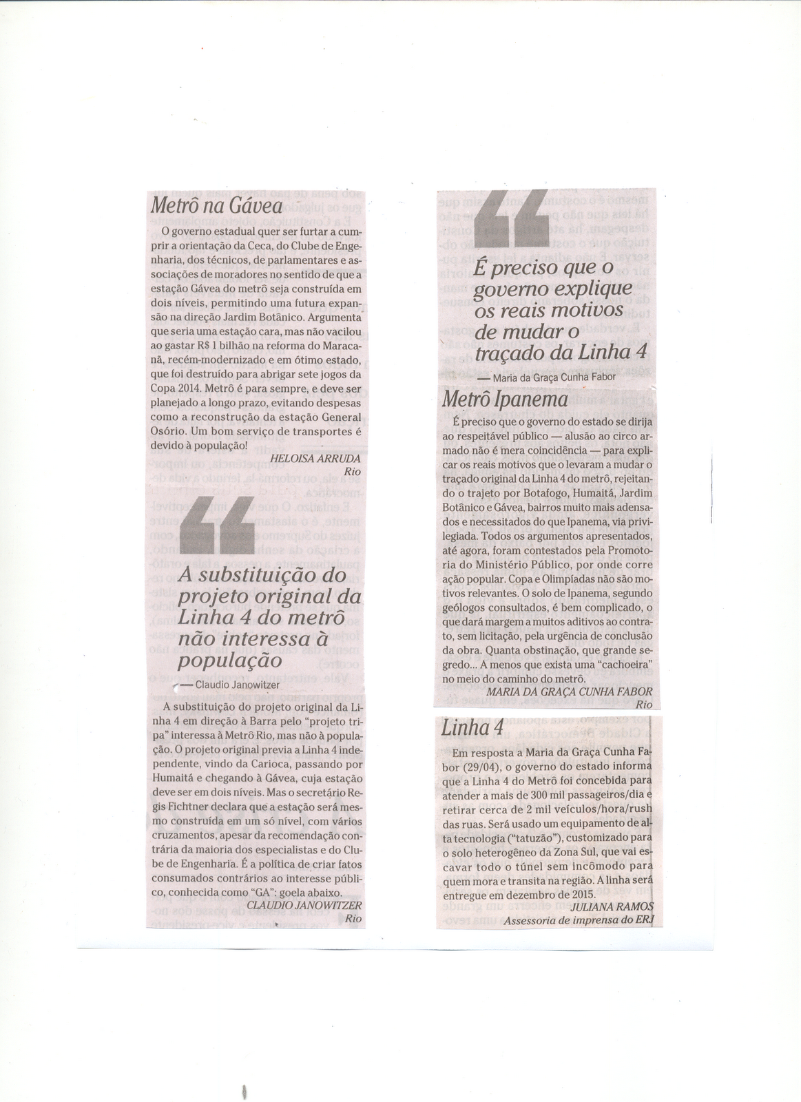 Cartas de leitores publicadas no Jornal o Globo e resposta do Governo do Estado do Rio de Janeiro
