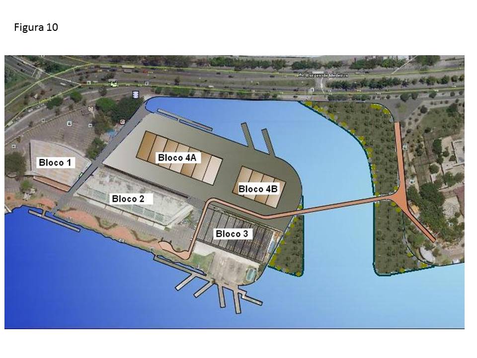 No tocante à recuperação ambiental havia o precedente do legado dos Jogos Olímpicos de Inverno de Vancouver – 2010, onde áreas degradadas à beira d’água foram restauradas para o lazer da população e que, por isso, permanecem como uma lembrança viva dos Jogos na cidade. O projeto de restauração do waterfront de Vancouver foi um marco para a cidade (Fig. 9). O mesmo poderia ser feito na Lagoa Rodrigo de Freitas, em seu trecho mais feio, quando a ciclovia deixa de margear o espelho d’água, no aterro da antiga Estação do Corpo. Seria um excelente presente dos Jogos para a cidade do Rio de Janeiro. A restauração ambiental permitiria que o acesso às novas garagens fosse feito conforme originalmente projetado, numa área de península, com águas pouco profundas (70 cm), mas suficientes para a operação de diversas modalidades náuticas movidas pela força humana (Fig. 10). Ajudaria também a requalificar a área, eliminando o risco de operações de helicópteros na vizinhança de parques públicos.