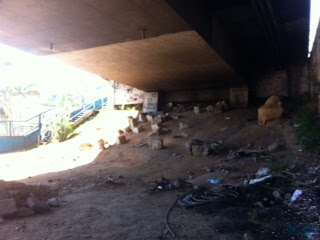 Além das ameaças intrínsecas à má conservação da estrutura, neste caso há um agravante: as condições de mobilidade dos pedestres no local são péssimas. Sim, anda-se em cima do viaduto e também há travessias, tudo feito a pé! O acesso, se assim é possível denominar, é feito por uma escada improvisada das obras do metrô, a caminhada se dá sobre a murada de proteção do viaduto, e a descida ou e a subida pelos taludes laterais!