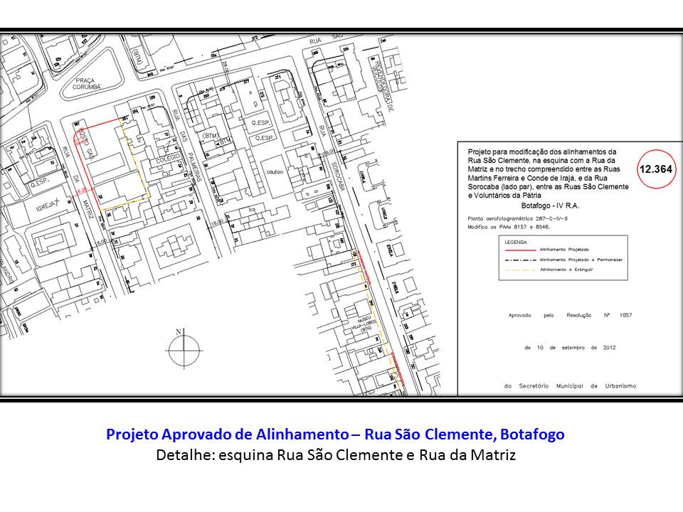 Justamente em Botafogo uma benesse urbanística inexplicável eliminou a possibilidade de que um dia houvesse uma praça na Rua São Clemente, em frente ao Morro Dona Marta, explicado em BOTAFOGO: A PRAÇA CEIFADA ANTES DE NASCER ou… BOTAFOGO: A PRAÇA E A RESOLUÇÃO.