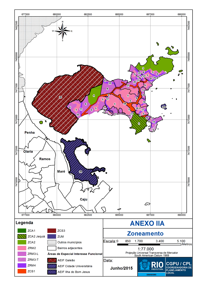 N=7477498 / E=682743, N=7477503 /E=682763, N=7477827 / E=683636; deste ponto, na direção Nordeste, em linha reta pelo fundo dos lotes e seguindo pela Rua Boa Esperança até o ponto de coordenadas N=7478419 / E=683737, localizado na orla da Praia dos Gaegos, seguindo por esta, na direção Noroeste, contornando a Ponta de Tubiacanga, a Praia de Tubiacanga e a Praia de Itacolomi; por esta, seguindo a cabeceira da pista do Aeroporto Tom Jobim, na direção Sudeste, até o ponto de partida. Área de Especial Interesse Funcional da Cidade Universitária