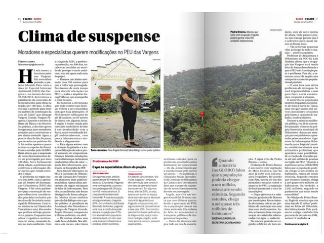 Para lembrar, aquela lei foi vetada pelo antecessor do hoje Prefeito do Rio, que arguiu a sua inconstitucionalidade. Porém o processo foi abandonado pela atual administração, que sancionou a proposta, acrescida de mais benesses urbanísticas, ainda, em relação à proposta anterior, com novos aumentos de gabaritos de altura e áreas de construção. Por outro lado, esta a mesma gestão suspendeu a aplicação do PEU Vargens desde novembro/2013 ao criar a Área de Especial Interesse daqueles bairros – a AEIA das Vargens – que impediu novos licenciamentos de obras exceto as ligadas direta ou indiretamente aos Jogos Olímpicos: criou-se uma espécie de reserva de mercado, na região, para apenas uma parcela de empreendedores e construtores envolvidos com a realização das obras ligadas direta ou diretamente aos Jogos Olímpicos. Posteriormente, permitiu-se a construção de casas com até duas unidades.