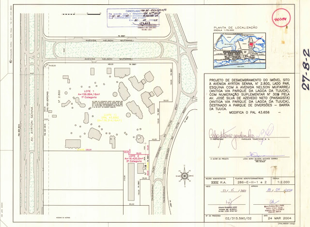 Abaixo, o desenho do PAL nº 46051 (Av. Ayrton Senna nº 2.800), cujo Lote 1, portanto, foi dividido.