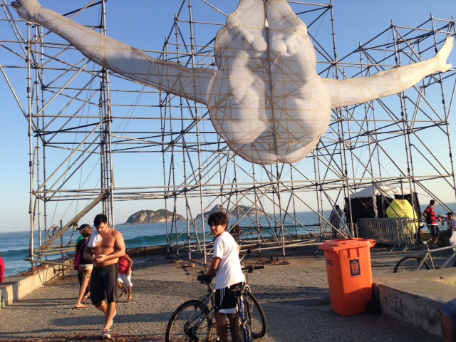 Sobre o “O atleta de topo” a coluna de Ancelmo Gois, no O Globo de hoje, esclareceu mais um mistério. Os gigantes na paisagem são obra de um artista francês. Além do que aportou sobre o prédio no Flamengo e do mostrado acima, mais uma imagem será instalada, dessa vez na Baía de Guanabara.