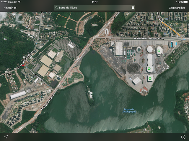 Parque Olímpico e Vila dos Atletas (Condomínio Ilha Pura) – duas das áreas beneficiadas pelo PEU Vargens versão 2009. Imagem: Google Earth Junho/2016 |